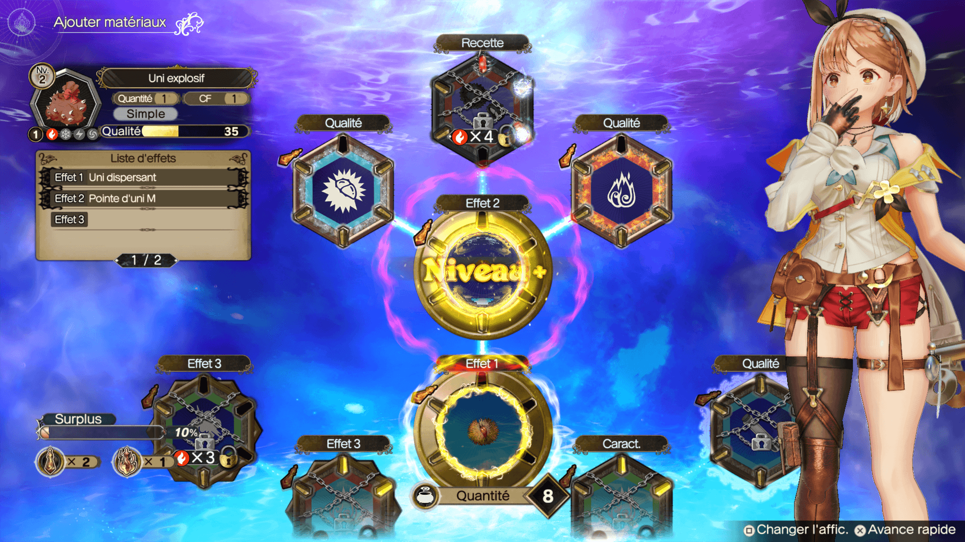 Augmenter le niveau d'une boucle de matériau débloque et booste ses effets spéciaux.