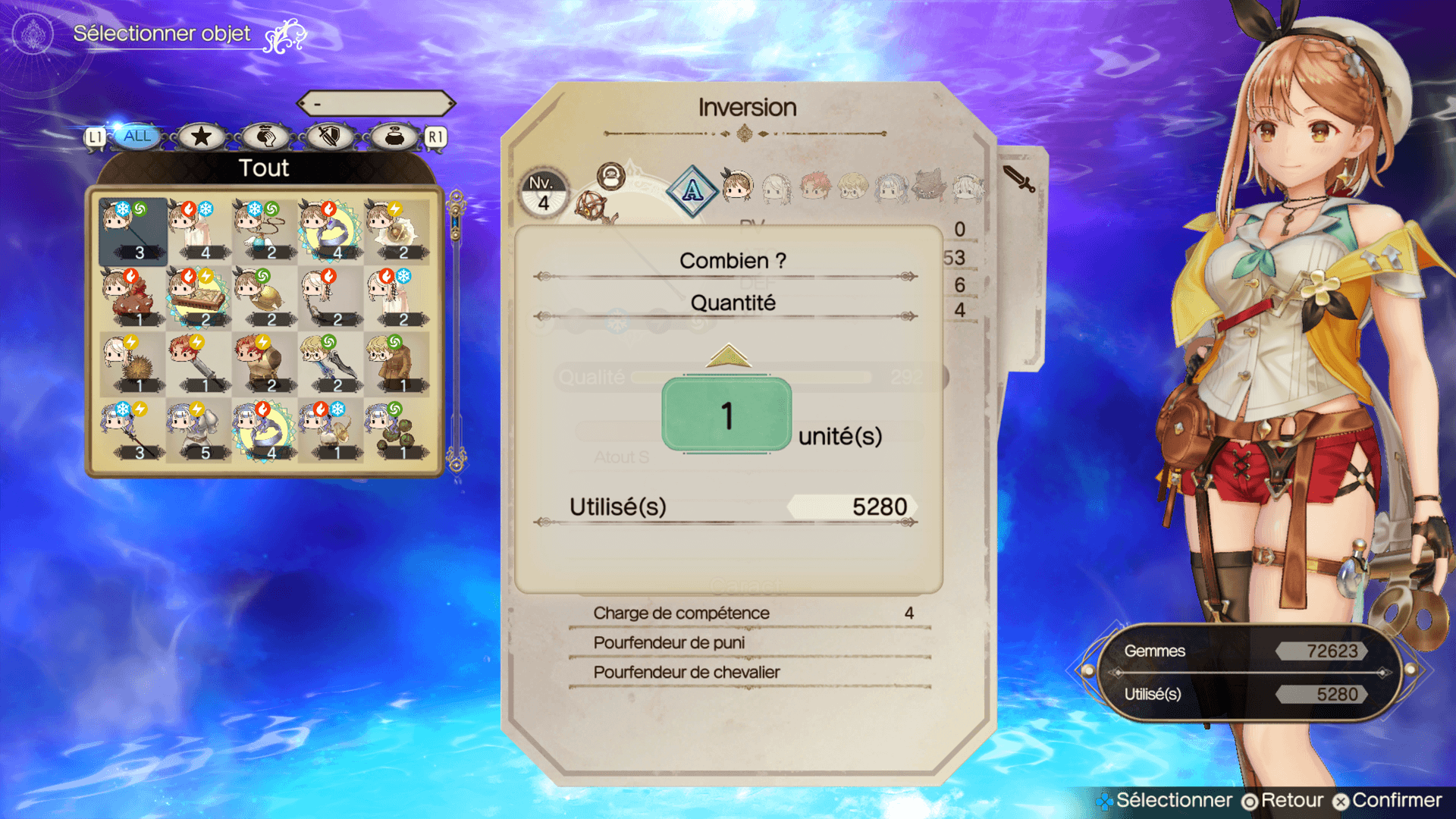 Le nombre de gemmes utilisées dépendra de l'objet et de la quantité.