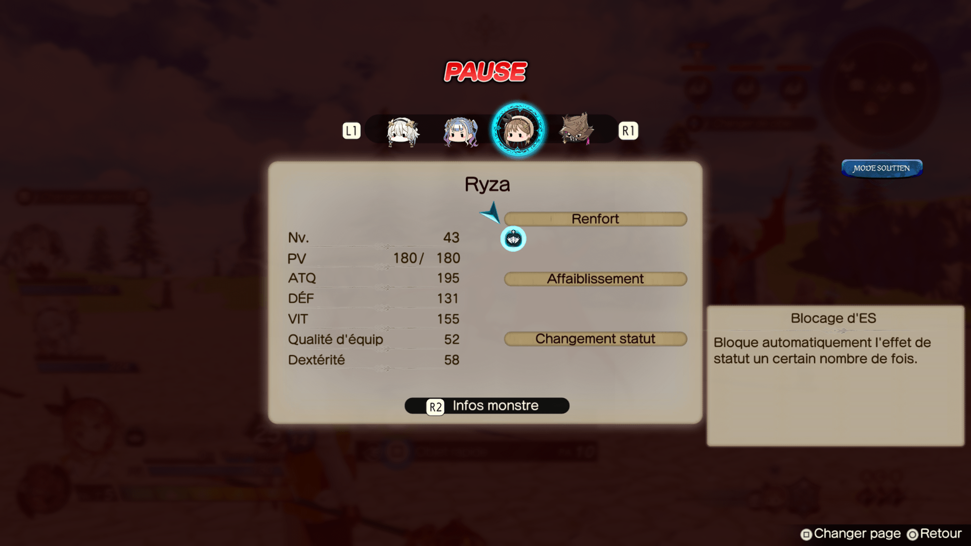 Les personnages peuvent parfois être affectés par des effets de statut.