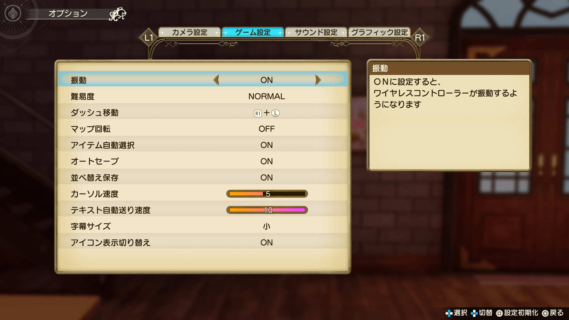 | 振動 | ONにすると、コントローラーが振動します。 |