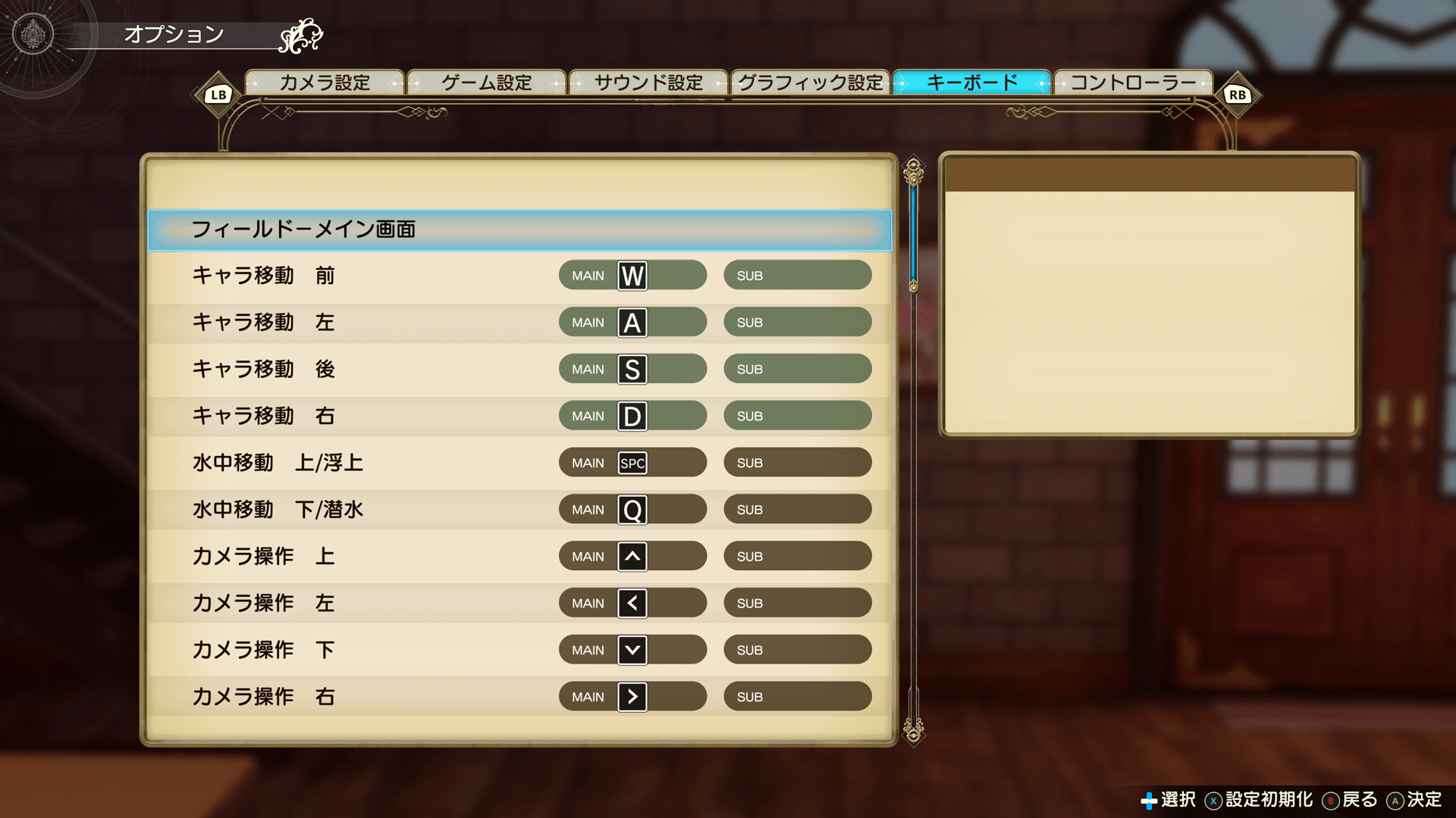 オプションでは、ゲーム中の操作などの設定を変更します。