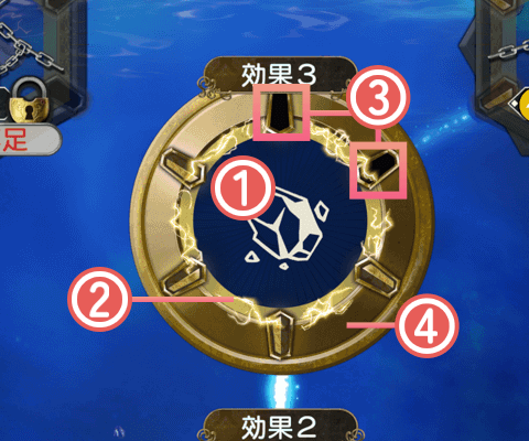 決められた値まで投入すると、マテリアル環がレベルアップし、効果がつきます。