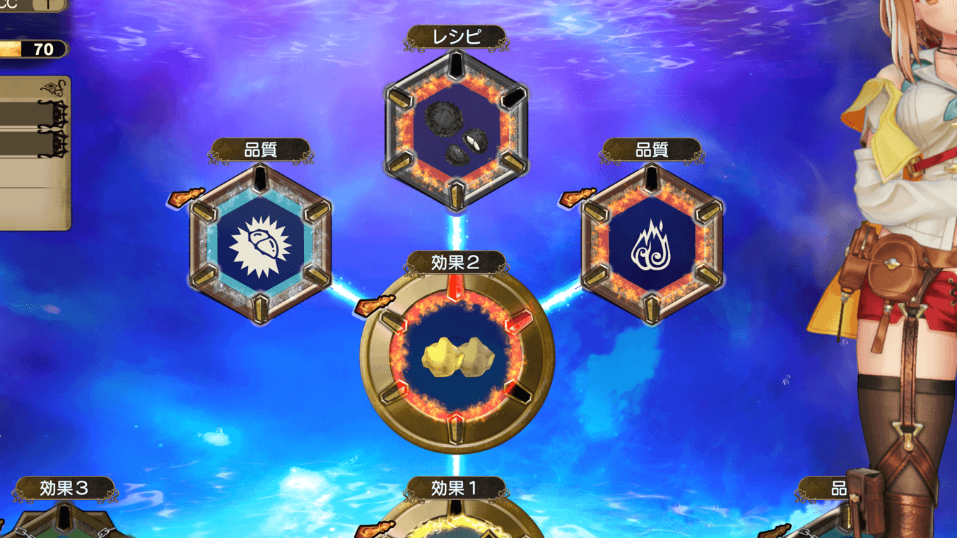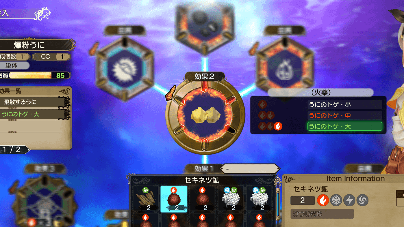 マテリアル環に材料を投入すると、調合ができます。