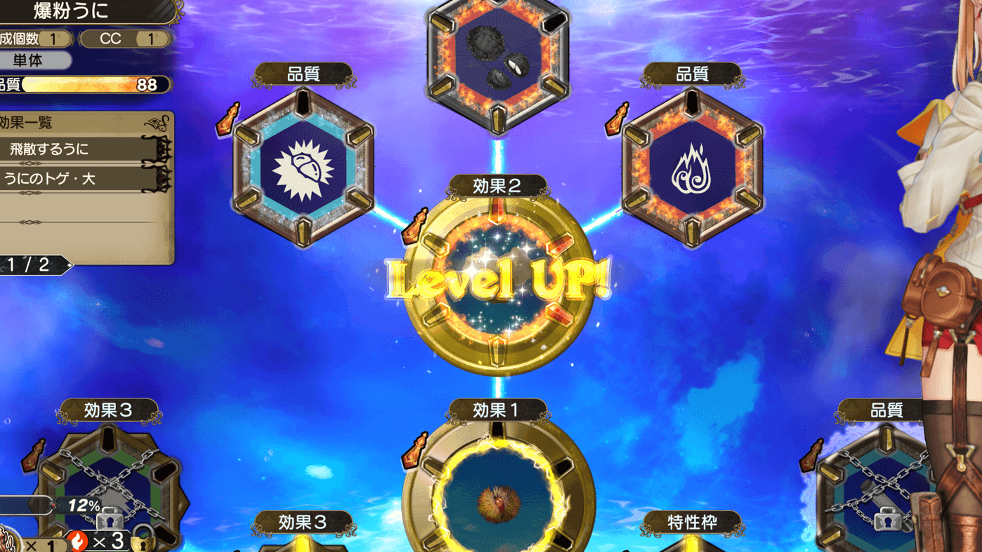 「レシピ」と書かれた特殊なマテリアル環をレベルアップさせると、全く別のレシピに変化します。