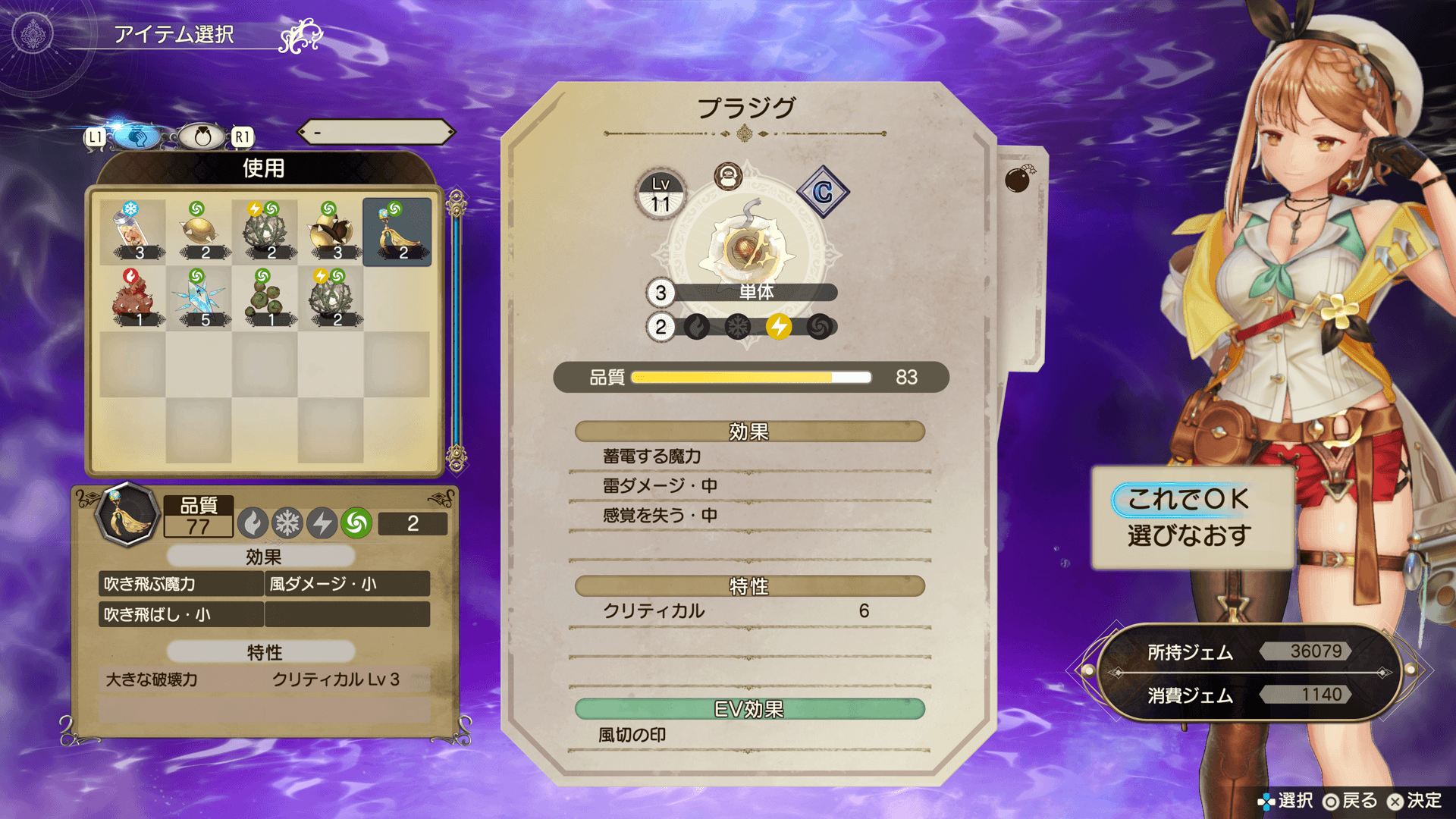 複製釜で「エボルブリンク」を選びます。掛け合わせるアイテムを2つ選びます。 エボルブリンクにはジェムを消費します。