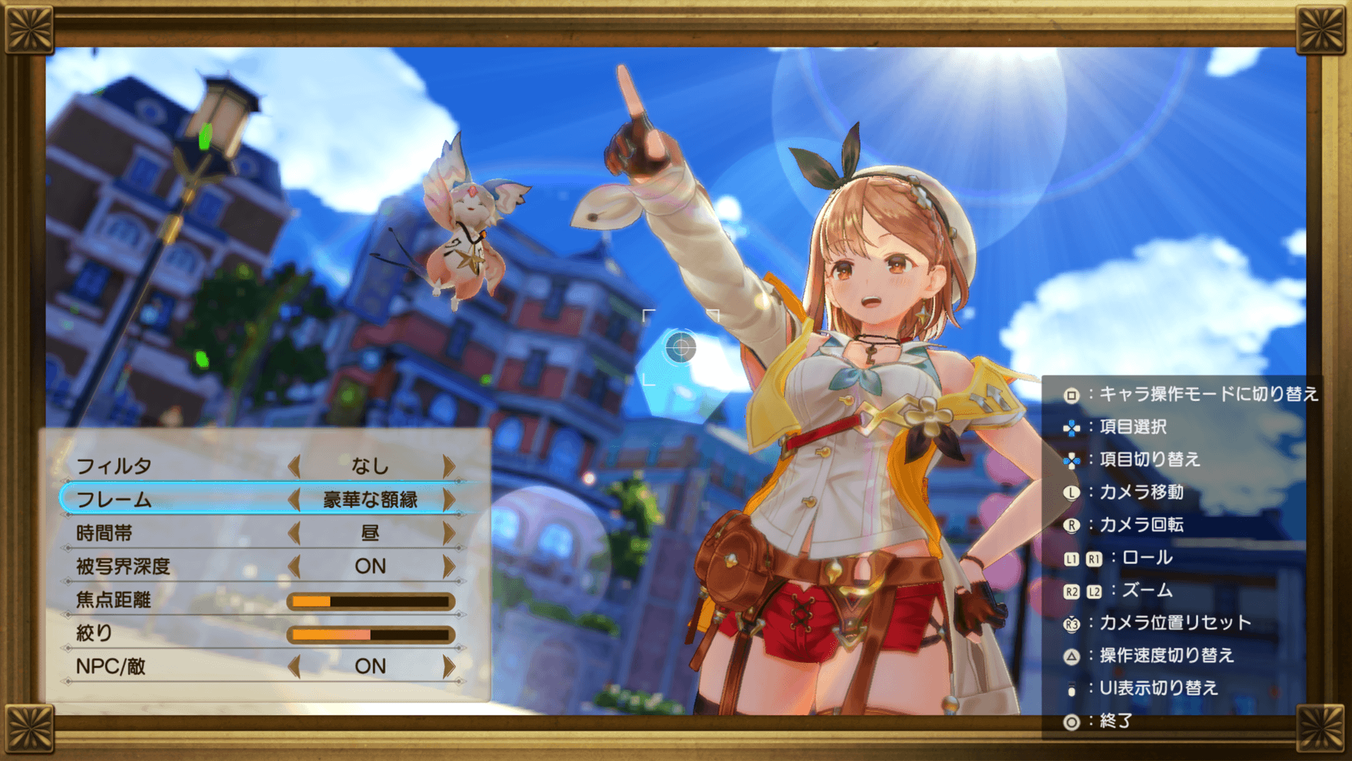 フォトモードを起動すると、アングルを変えたり、エフェクトをつけたりして、スクリーンショットを撮れます。