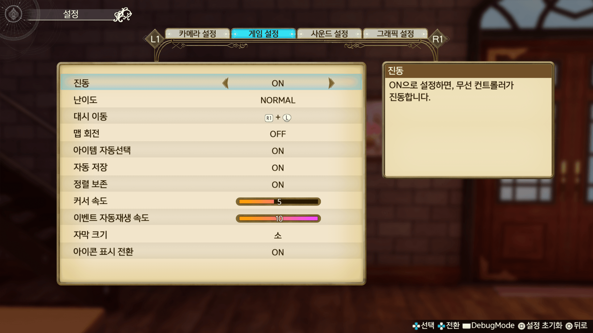 | 진동 | ON으로 설정하면, 컨트롤러가 진동합니다. |