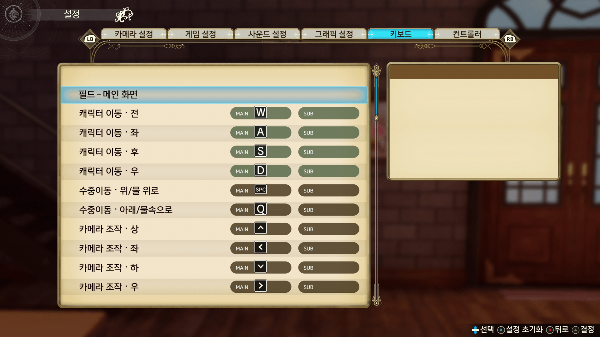 를 누르면 표시되는 PC 버전 메뉴를 통해서도 열 수 있습니다. 또한 「키보드」「컨트롤러」도 설정할 수 있습니다.