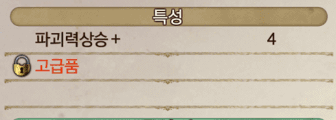 아이템의 속성과 그 수치입니다. 투입하는 재료의 품질이나 특성에 따라 증감합니다.