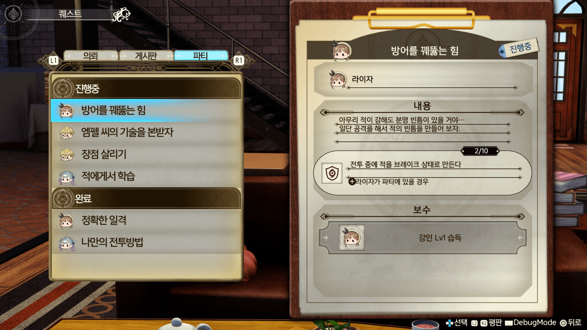 라이자 일행의 레벨이나 평판 레벨에 따라 받을 수 있는 퀘스트가 늘어납니다. 또한, 상점에서 판매되는 상품의 가격이 낮아지는 경우도 있습니다.