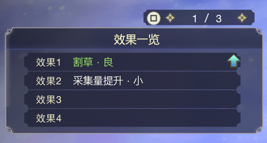 以割草镰为例子,其效果将按照“割草”→“割草·良”→“割草·优”的顺序提升。