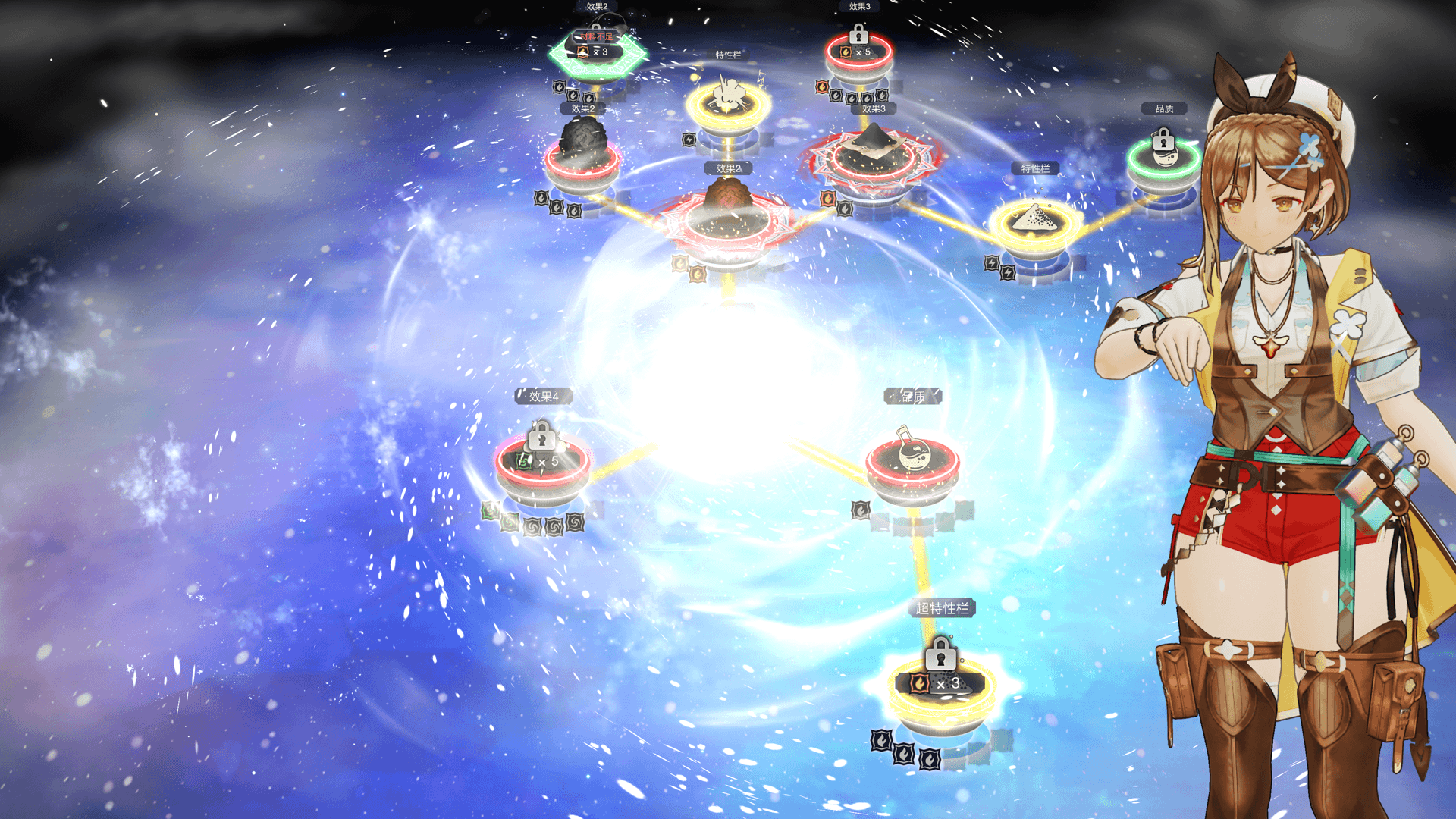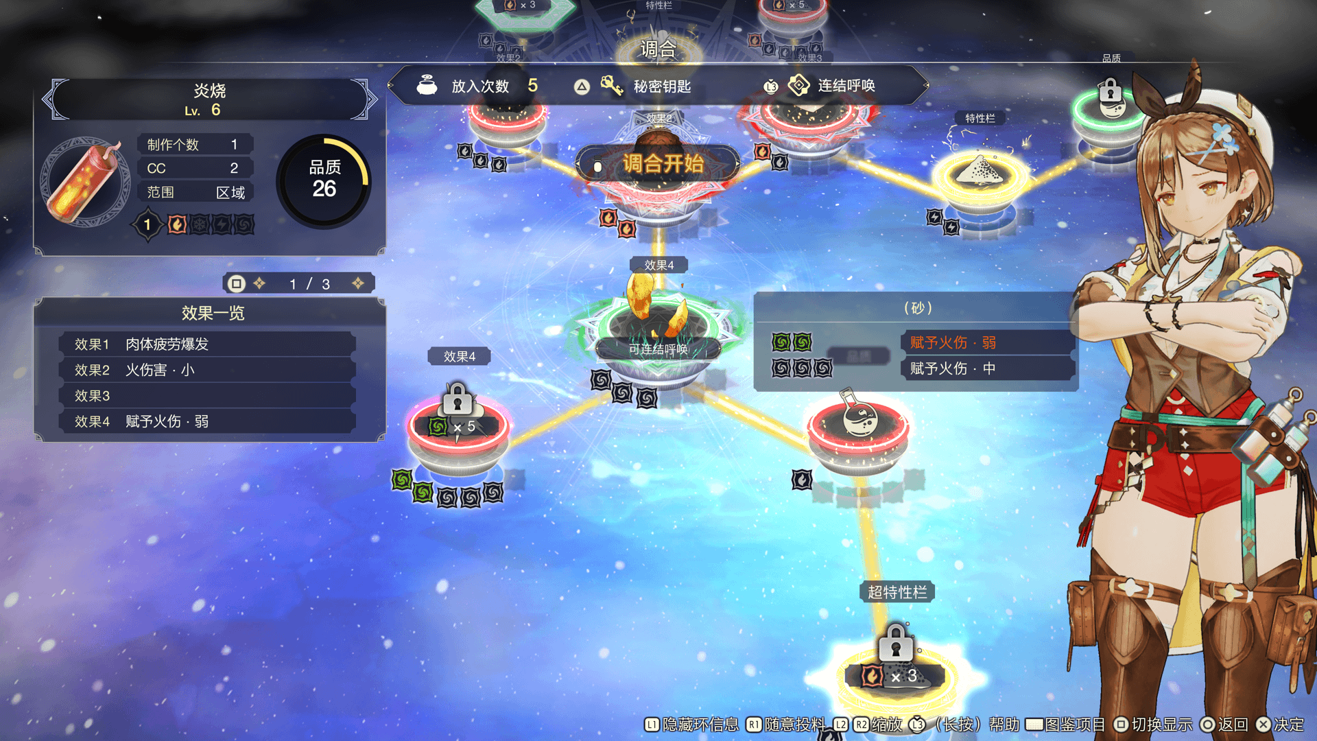 连结呼唤不仅能改变基础材料环的属性,还能增加可放入材料的材料环数量,以此调合出更厉害的道具。
