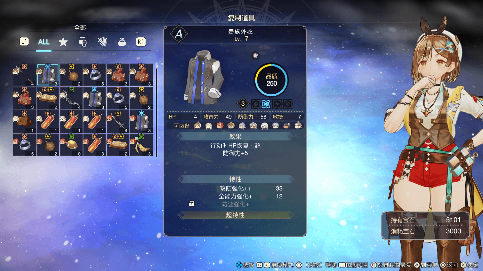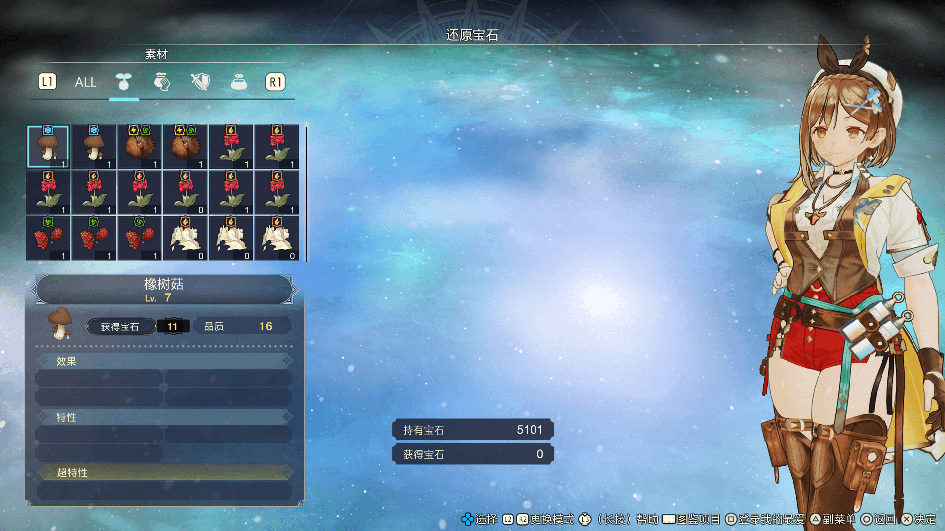 带回炼金工房等处的道具当中,若有不需要的道具(例如品质偏低或数量过多),可以将其自动还原为宝石。