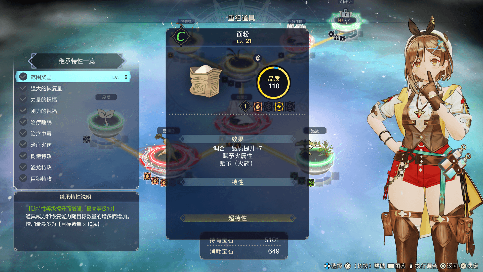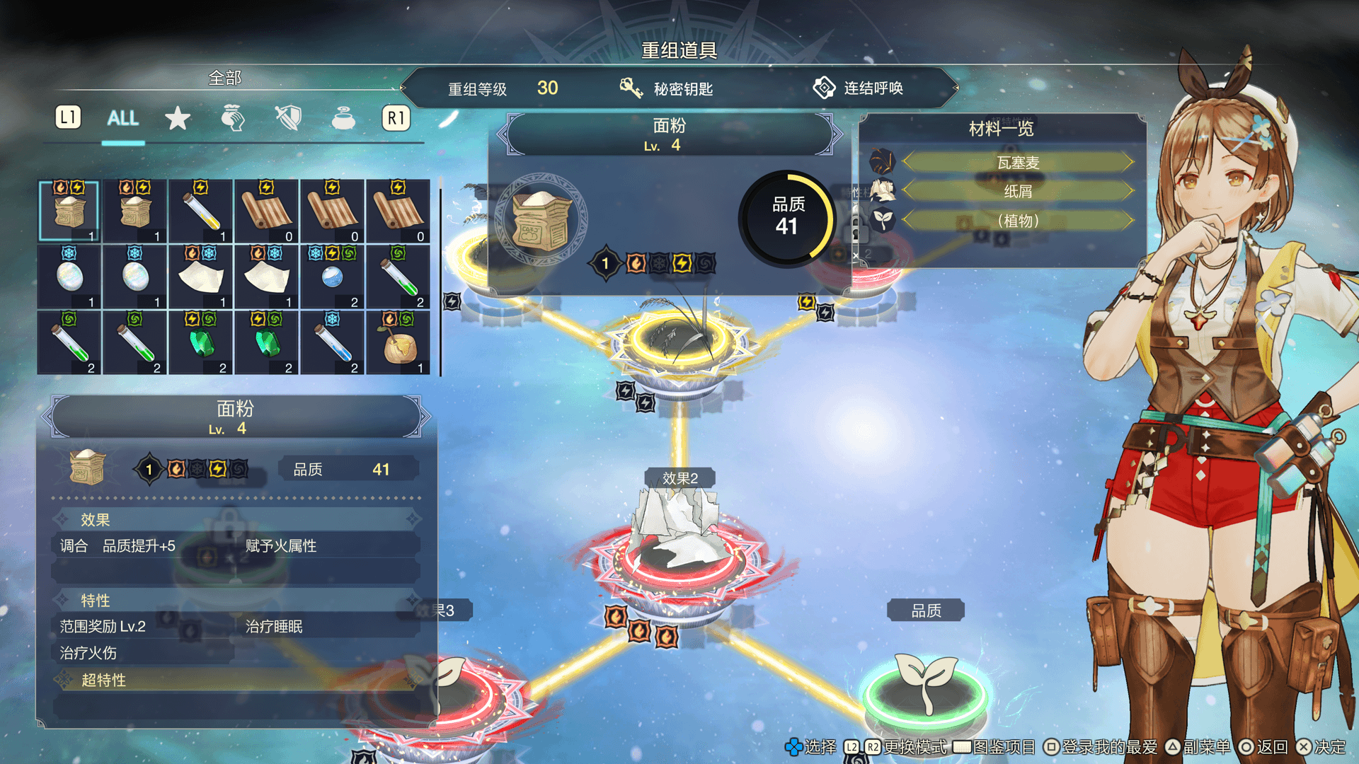 习得技能树上的“重組道具”技能后,即可通过追加材料来强化已完成的道具。