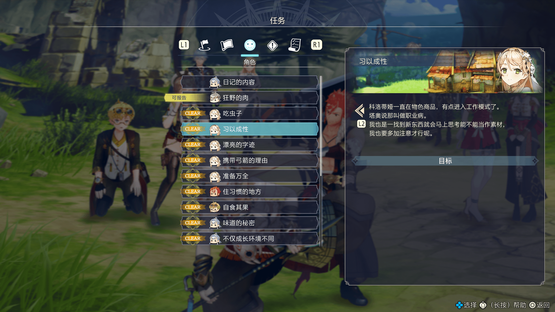 达成诸如调合或交付道具,或是讨伐魔物等任务目标时,即可推进游戏剧情或领取报酬。