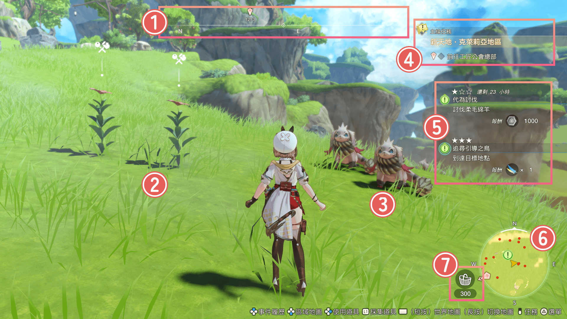 顯示玩家朝向的方向、位於附近的地標,或任務目標地點的方向與距離。