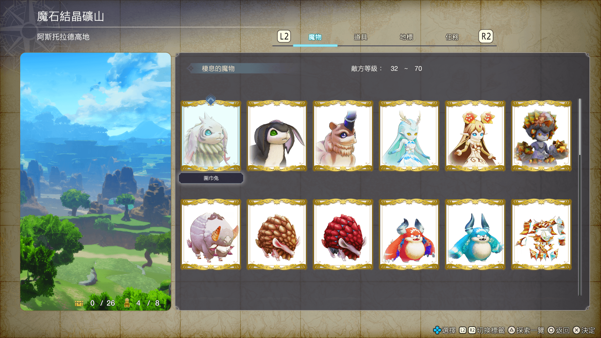 顯示已發現的地標數量,以及已打開的寶箱數量。