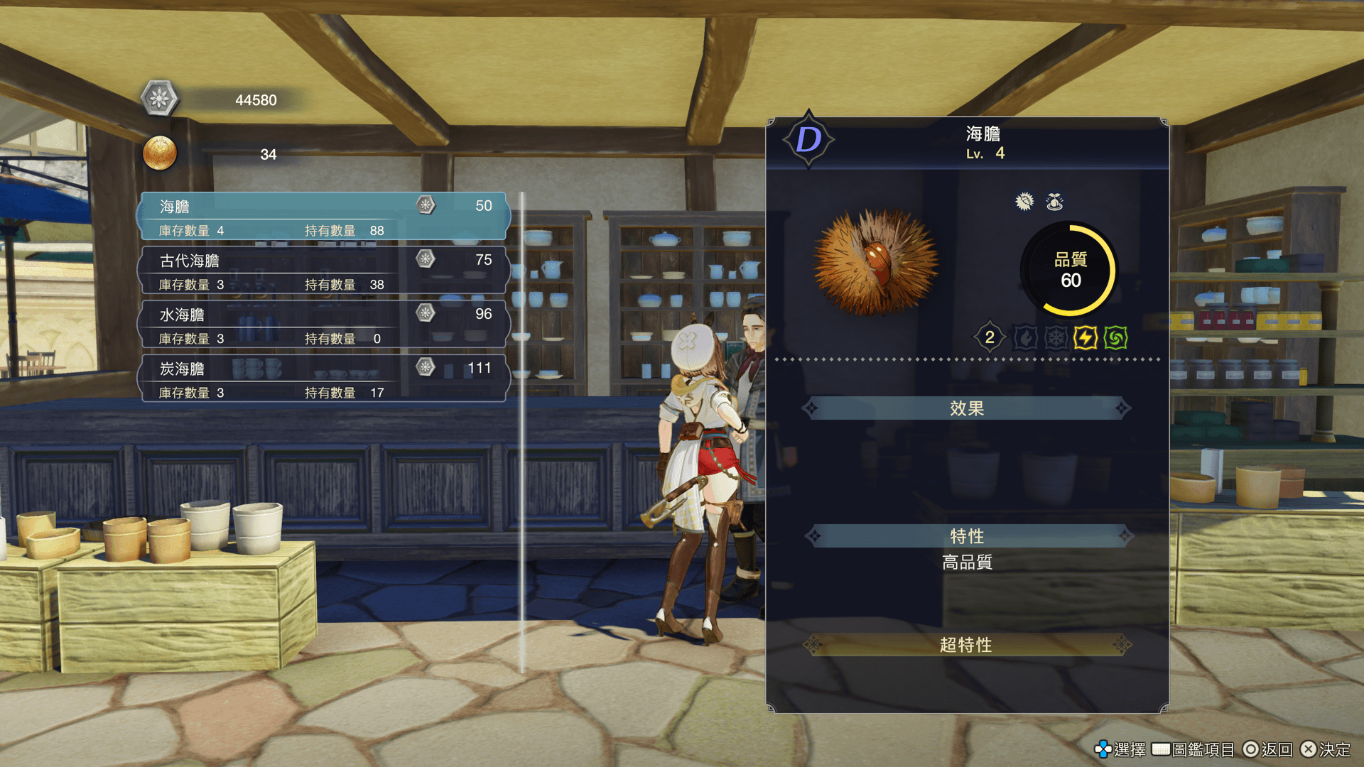 在商店可以購買調合用的素材以及擺設用的傢俱。此外,還能出售採集籃與材料箱中的道具。