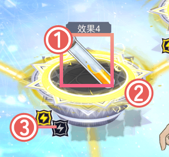 於材料環放入相同屬性的材料後,圖示便會隨屬性值亮起。當所有的圖示亮起後,材料環便會升級並顯現其效果。