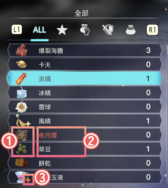道具名稱 白色:可以製作該道具