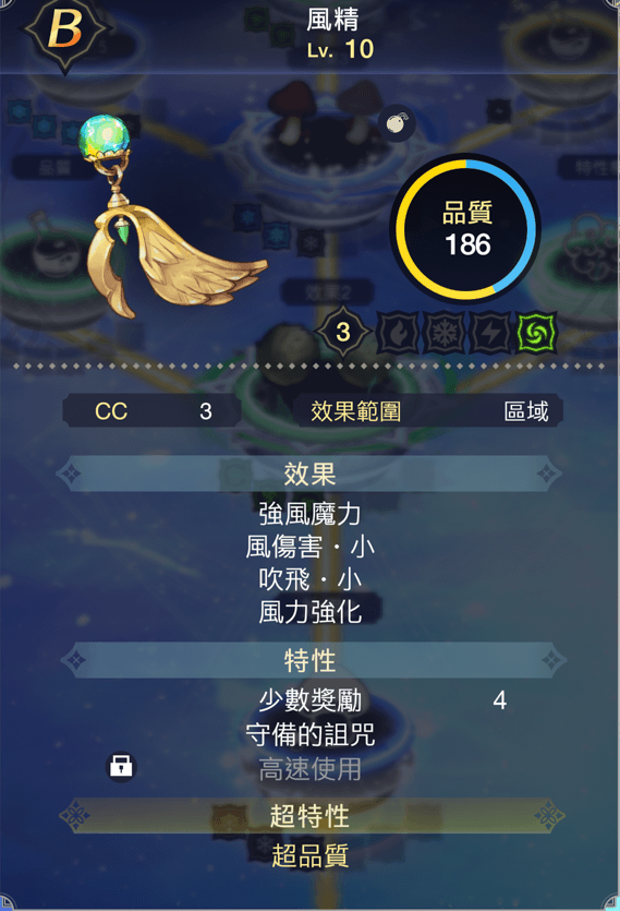 道具的品質。品質會取決於放入的材料。品質越高,道具的威力與回復力也越高。