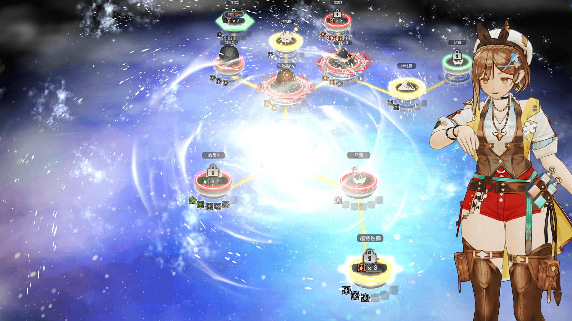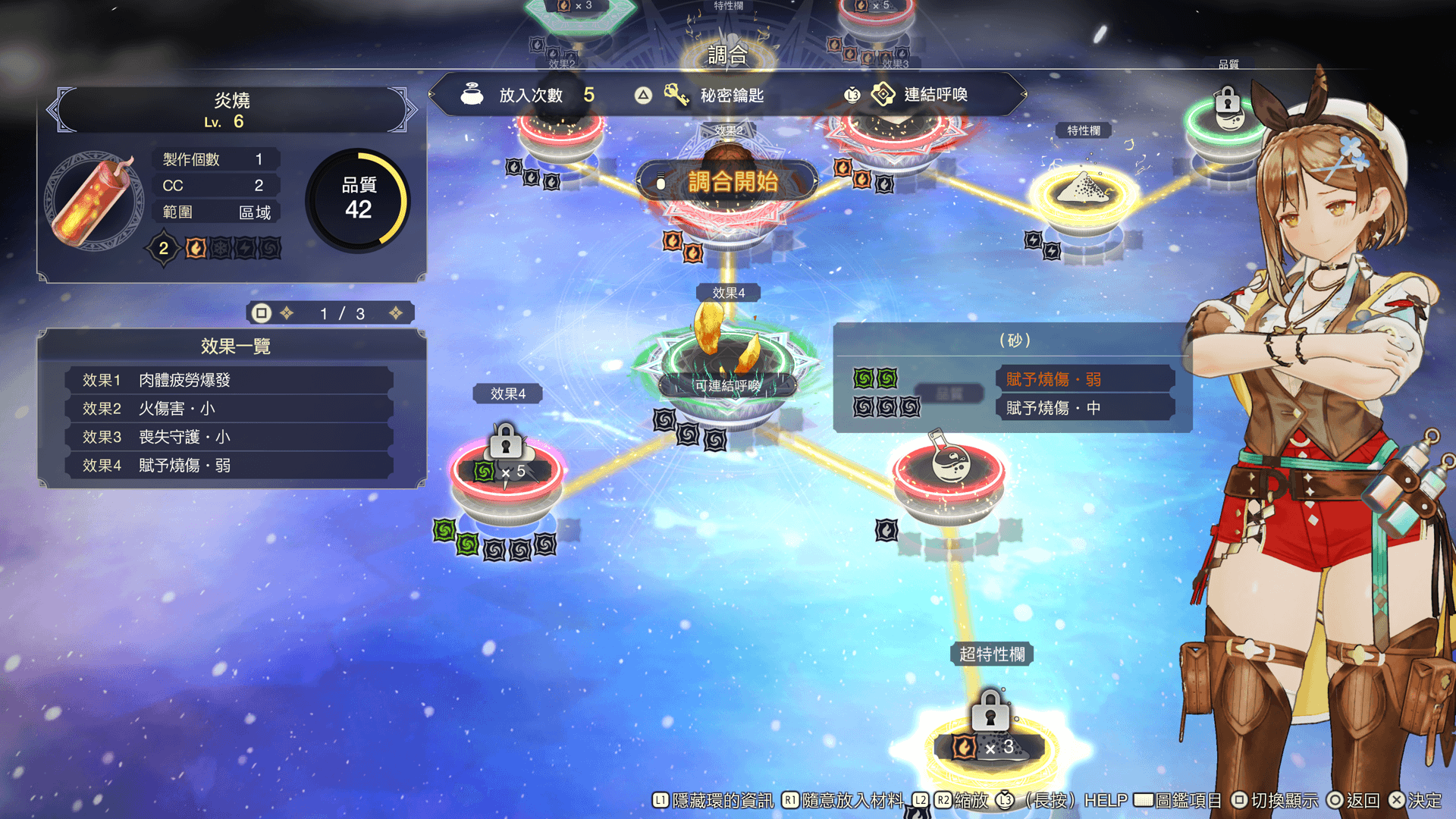 連結呼喚不僅能改變基礎材料環的屬性,也能增加可放入材料的材料環數量,藉此得以調合出更強力的道具。