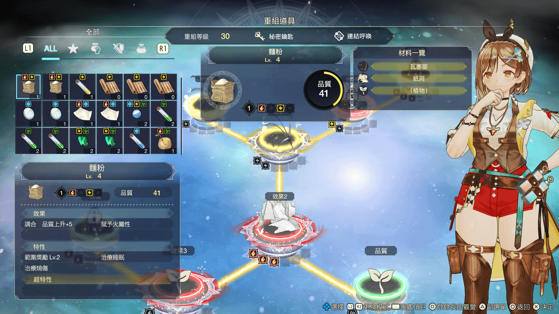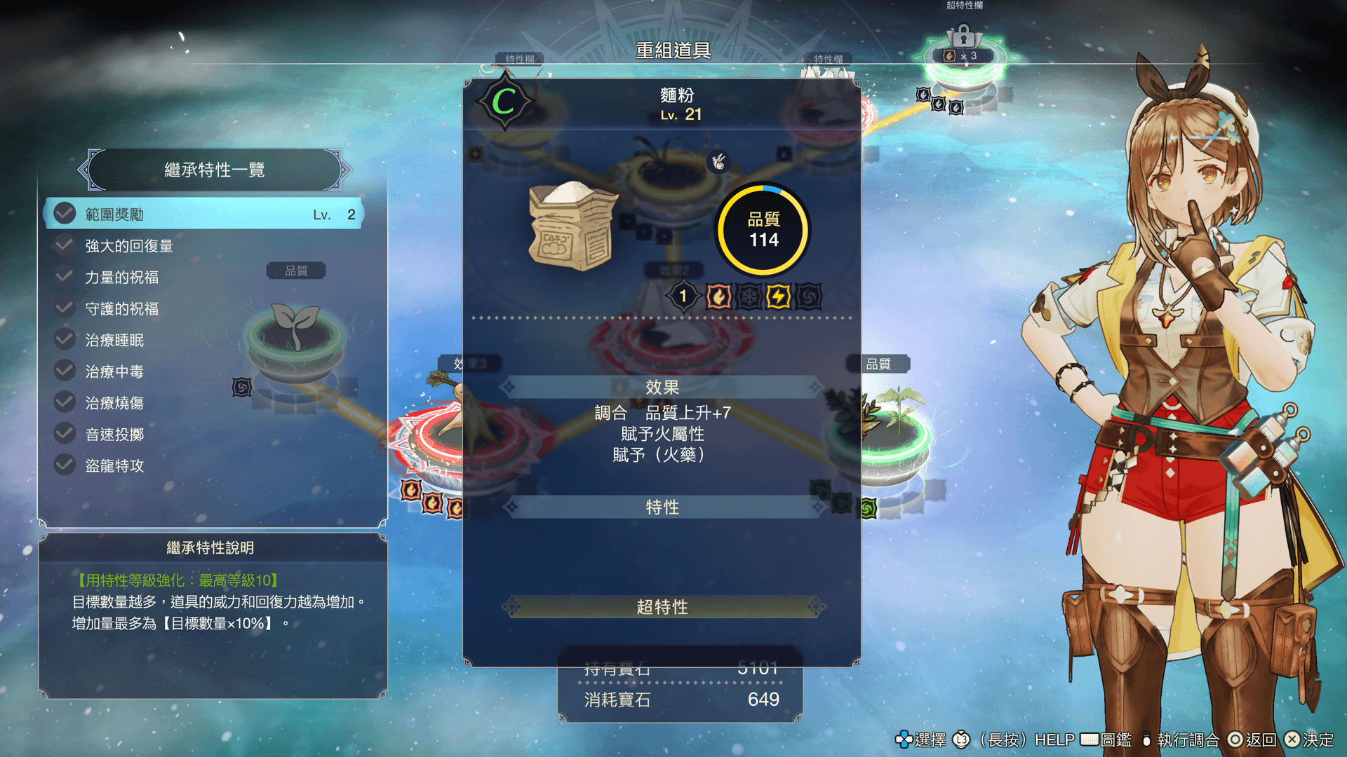 習得技能樹上的「重組道具」後,便可藉由追加材料來強化已完成的道具。