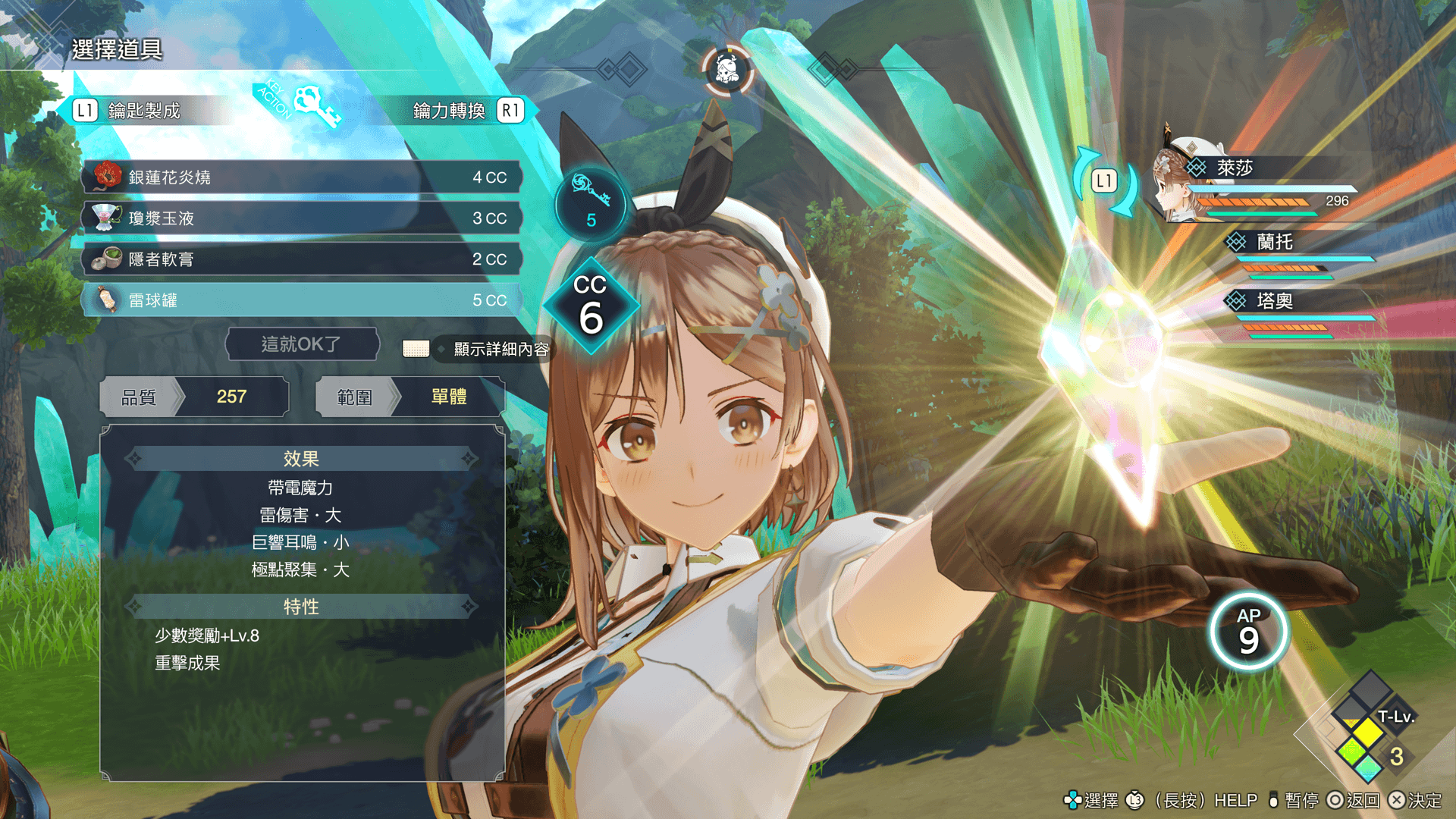 - 使用相同屬性的技能時,獲得的CC量增加。