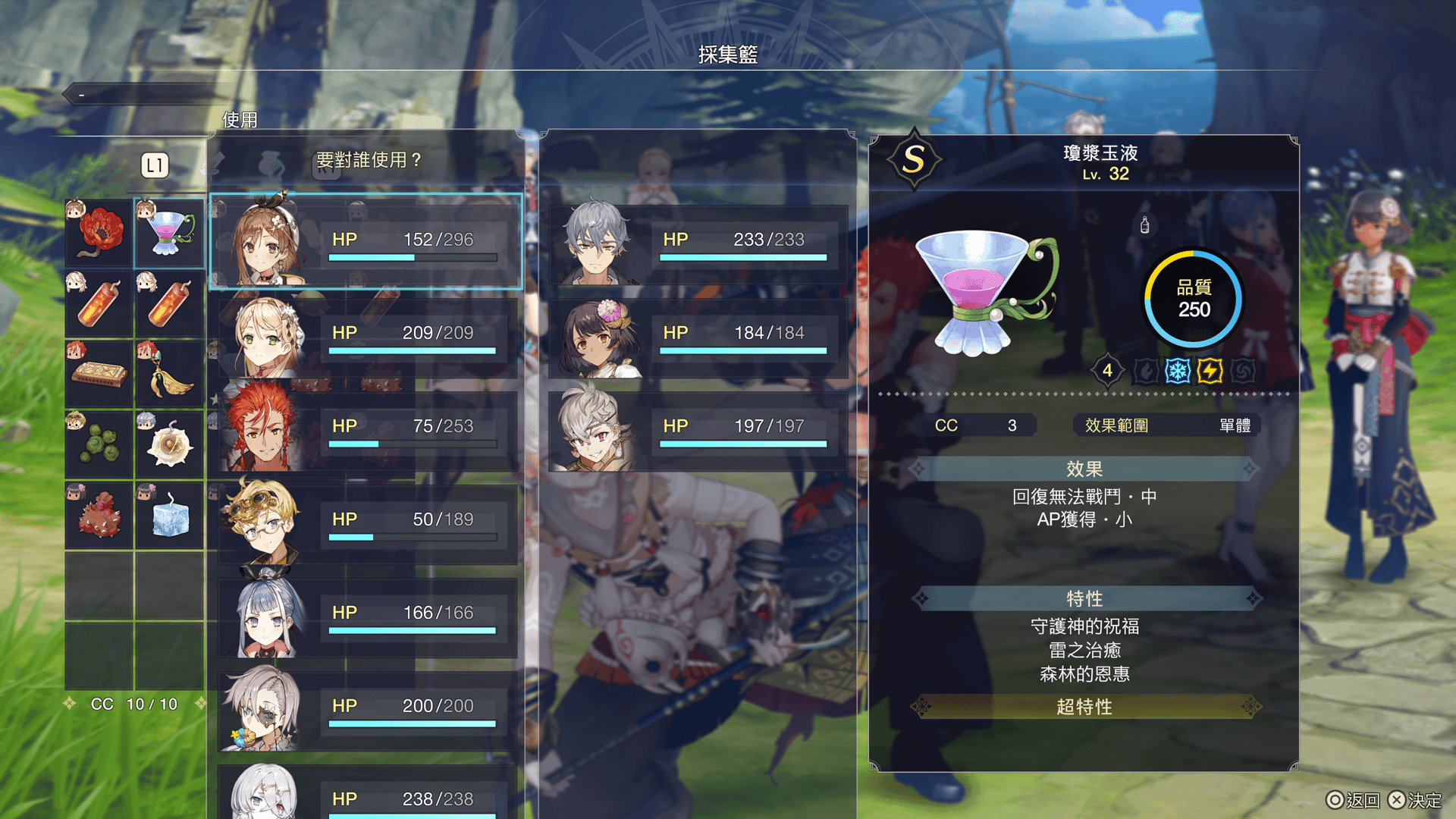 可使用CC瓶內的CC,在原野使用回復道具。