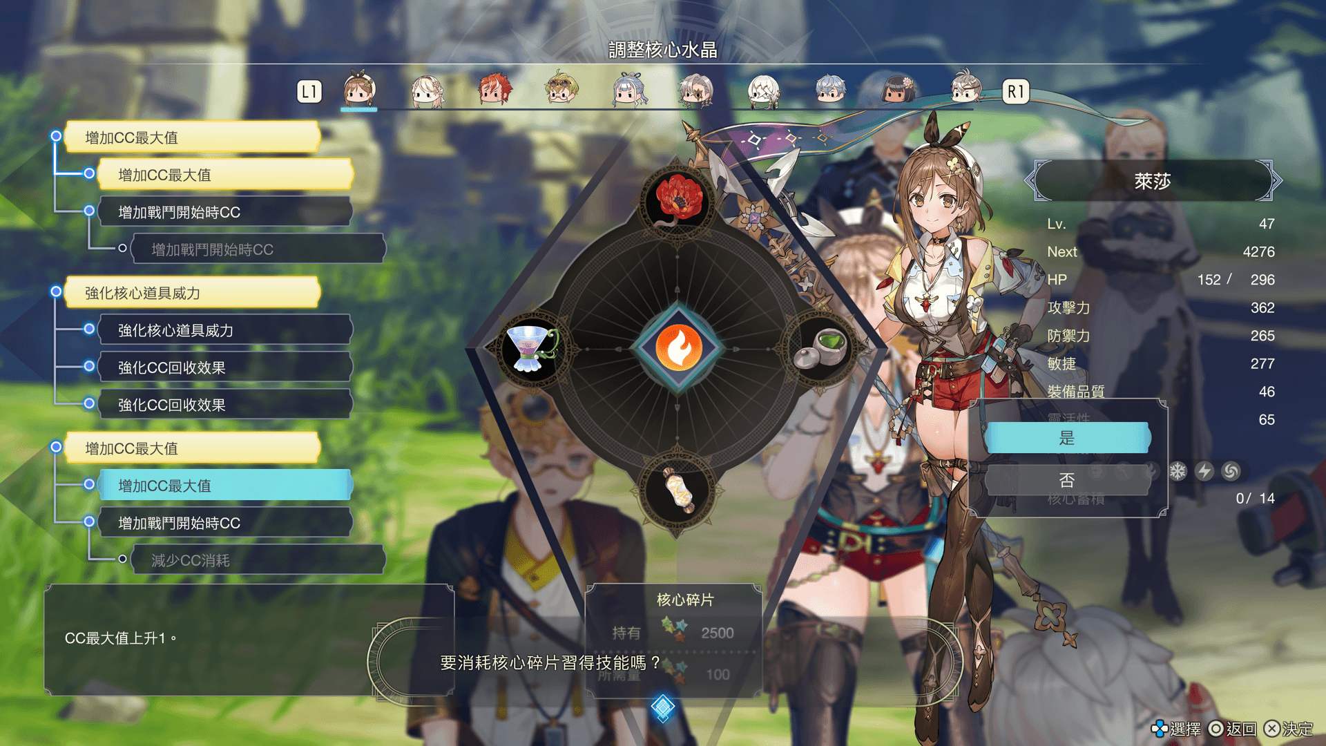 每個角色能登錄至核心水晶的道具數量最多四個。