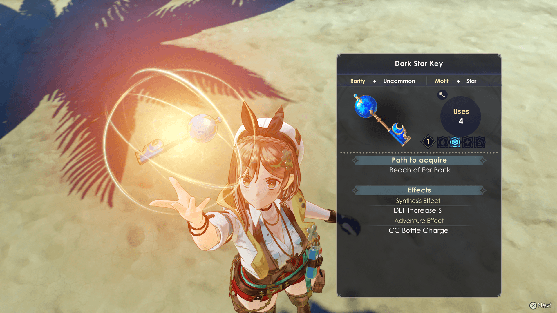 Secret Keys can be used for synthesis, combat, exploration, and even when gathering.