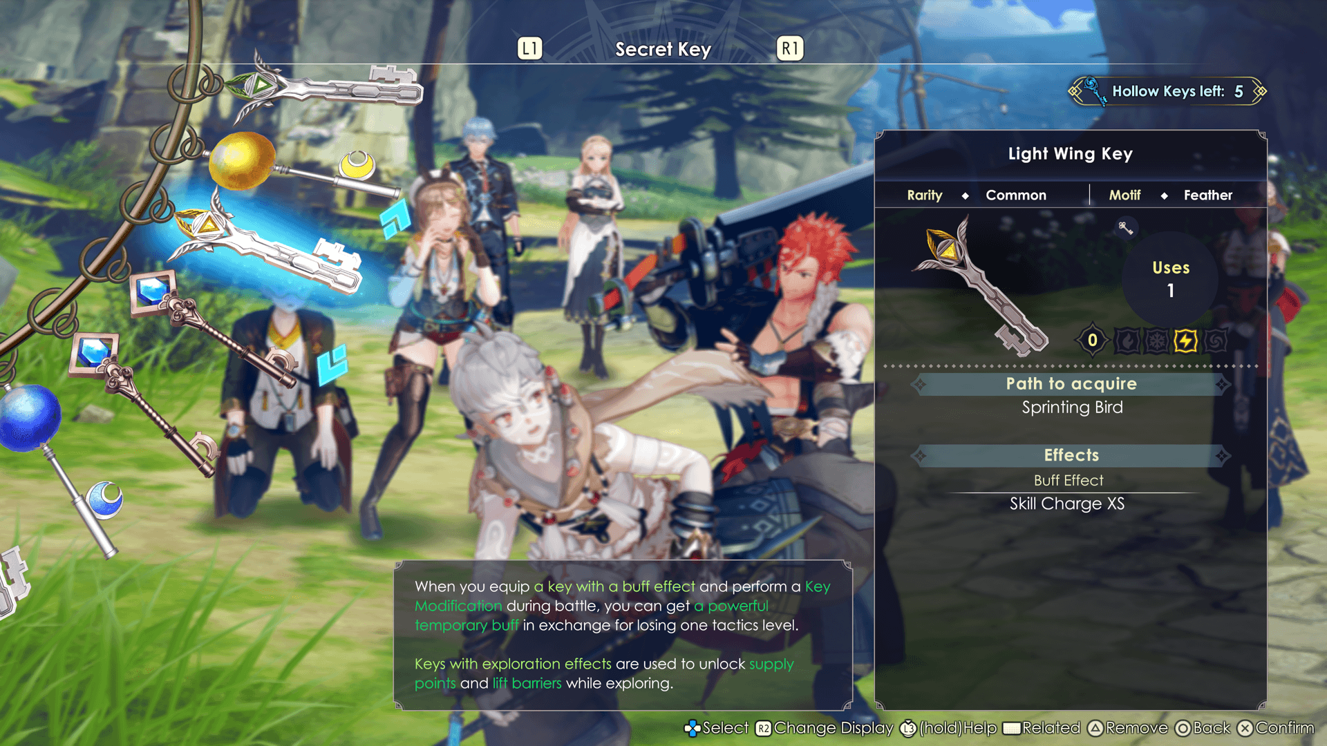 These keys can be used to strengthen your allies during combat by performing Key Modification, or to create better items by activating them during synthesis. You can also use them to your advantage while exploring and gathering.
