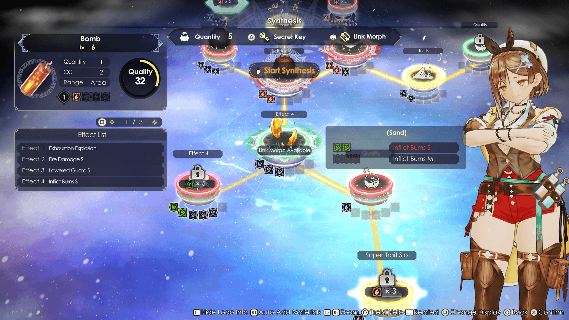 Link Morph can change the element of the Core Ingredient Loop, add new Material Loops to put ingredients into, and so on. This allows you to create even more powerful items.