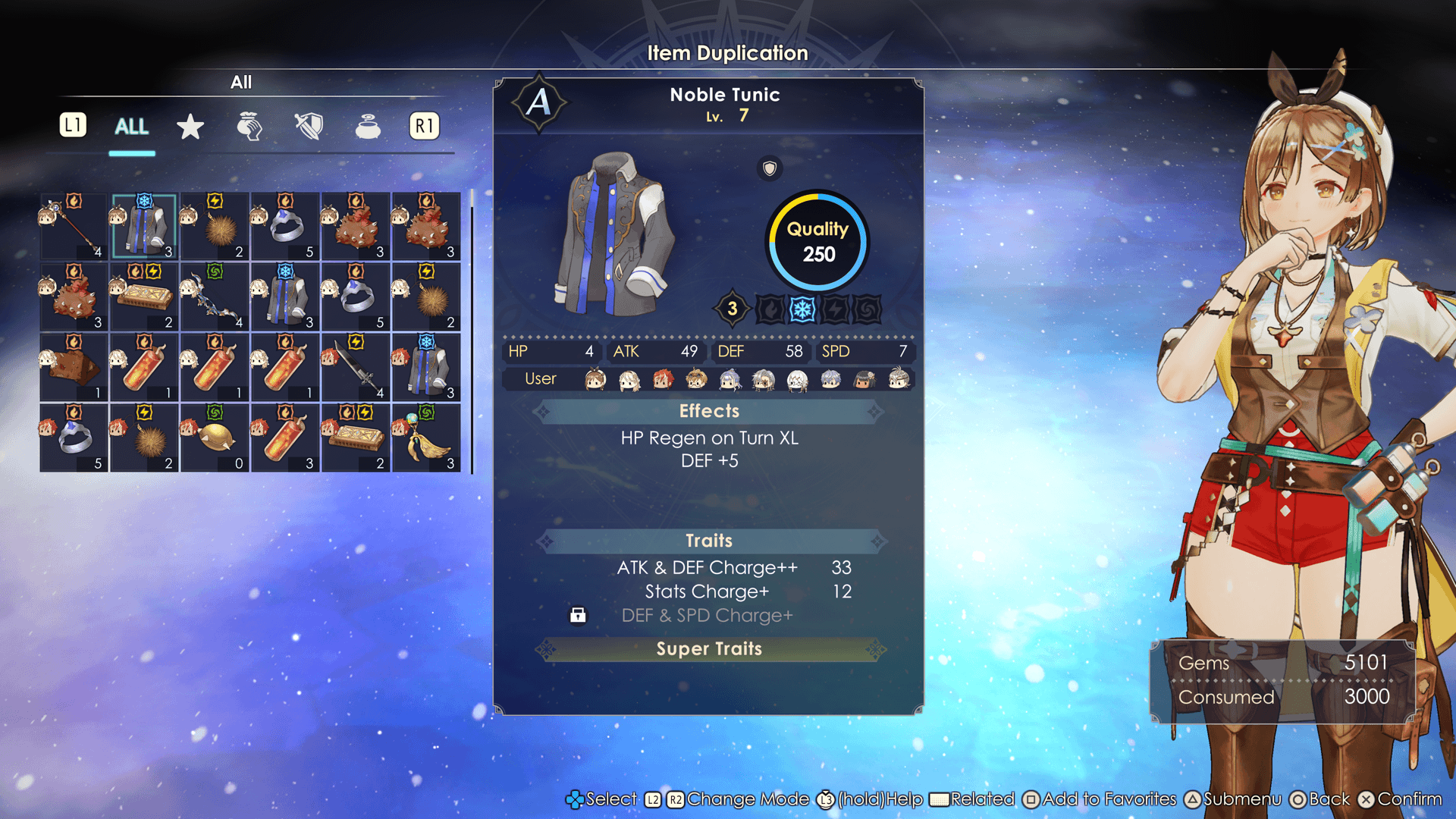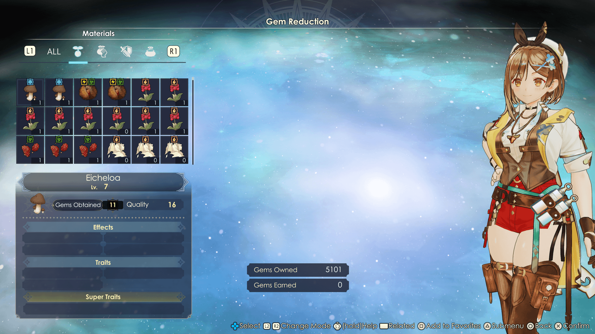 Items brought back to the atelier that are deemed unnecessary, such as those of low quality or in excess quantity, can be automatically converted into Gems.