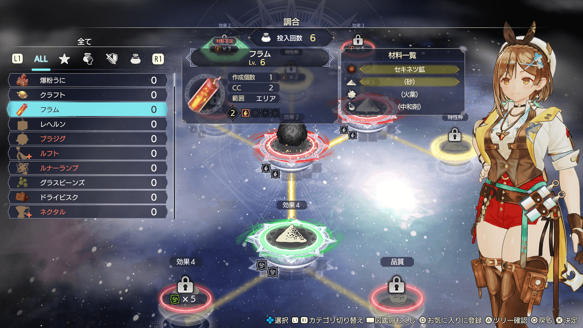 調合で新しいアイテムを作成。スキルツリーを開放し、調合を極めよう。