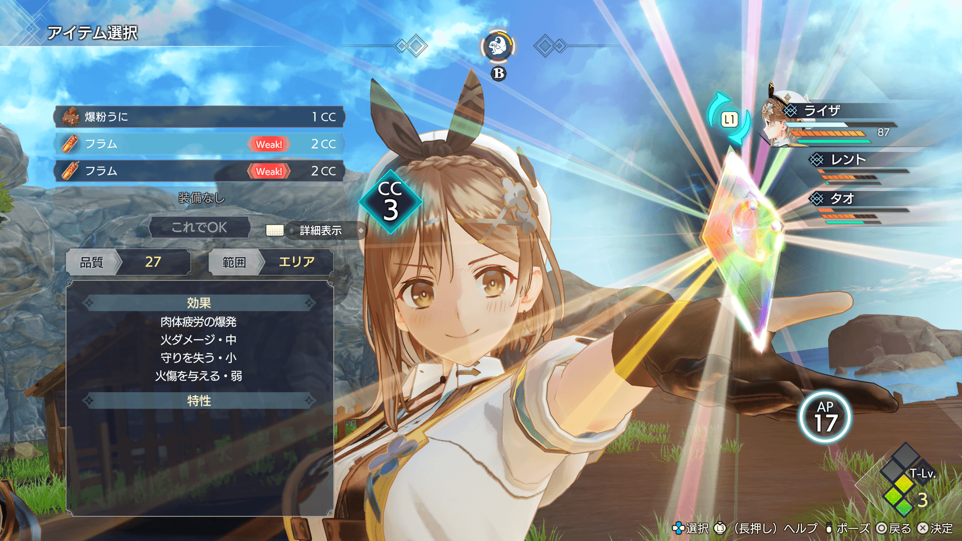 プレイヤーは主人公・ライザを操作して、探索・採取・調合・戦闘を繰り返し、世界を冒険していきます。