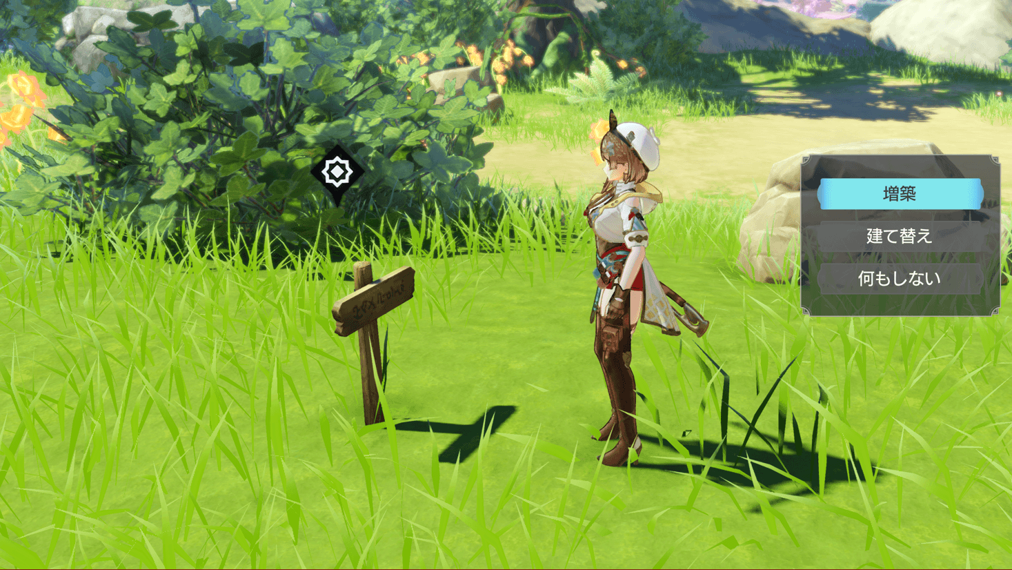建築後も建築スタイルを変更できます。変更するには、アトリエの側にある立て看板の前で「建て替え」を選びます。