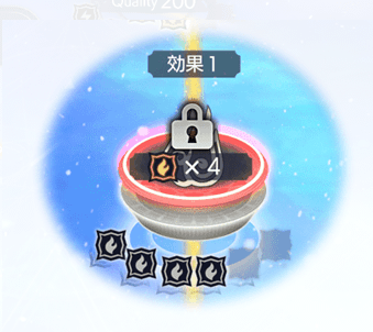 マテリアル環と同じ属性の材料を投入すると、属性値に応じてアイコンが点灯します。すべて点灯すると、マテリアル環がレベルアップし、マテリアル環の効果が発現します。