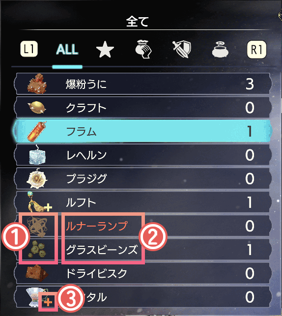 アイテム名 白色:アイテム作成可能