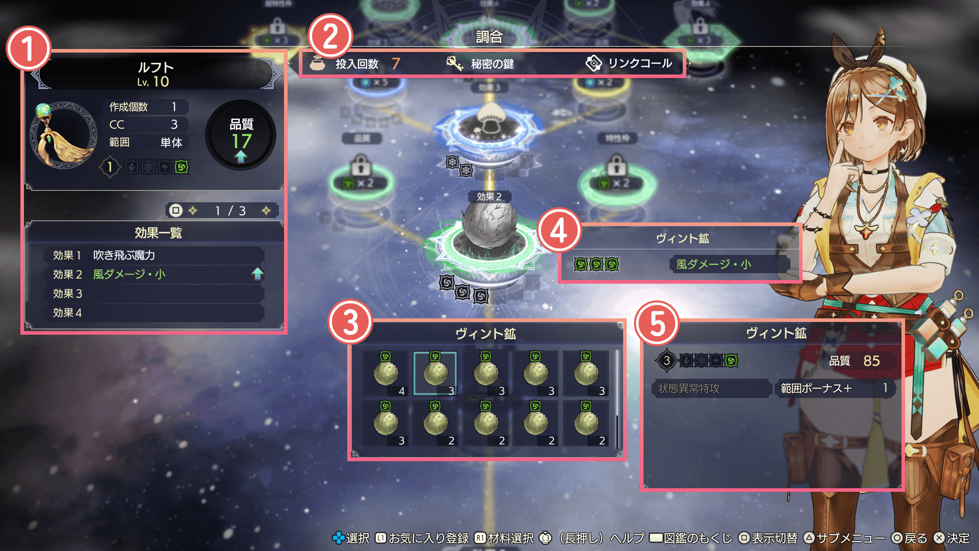 今回の調合で作成できるアイテムの個数です。