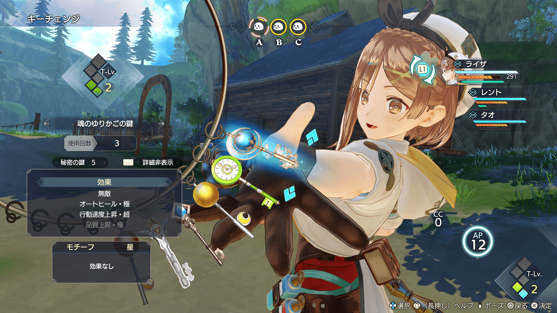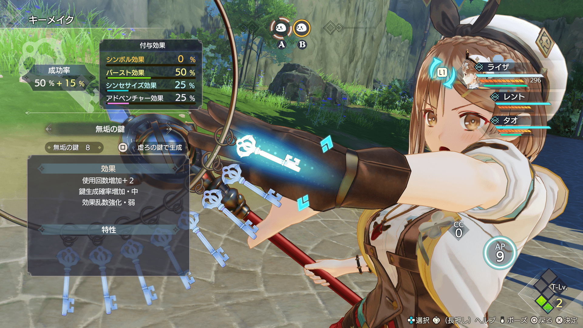 基礎コマンド「アイテム」を選び、アイテム選択画面で以下のボタンを押すとキーメイクできます。