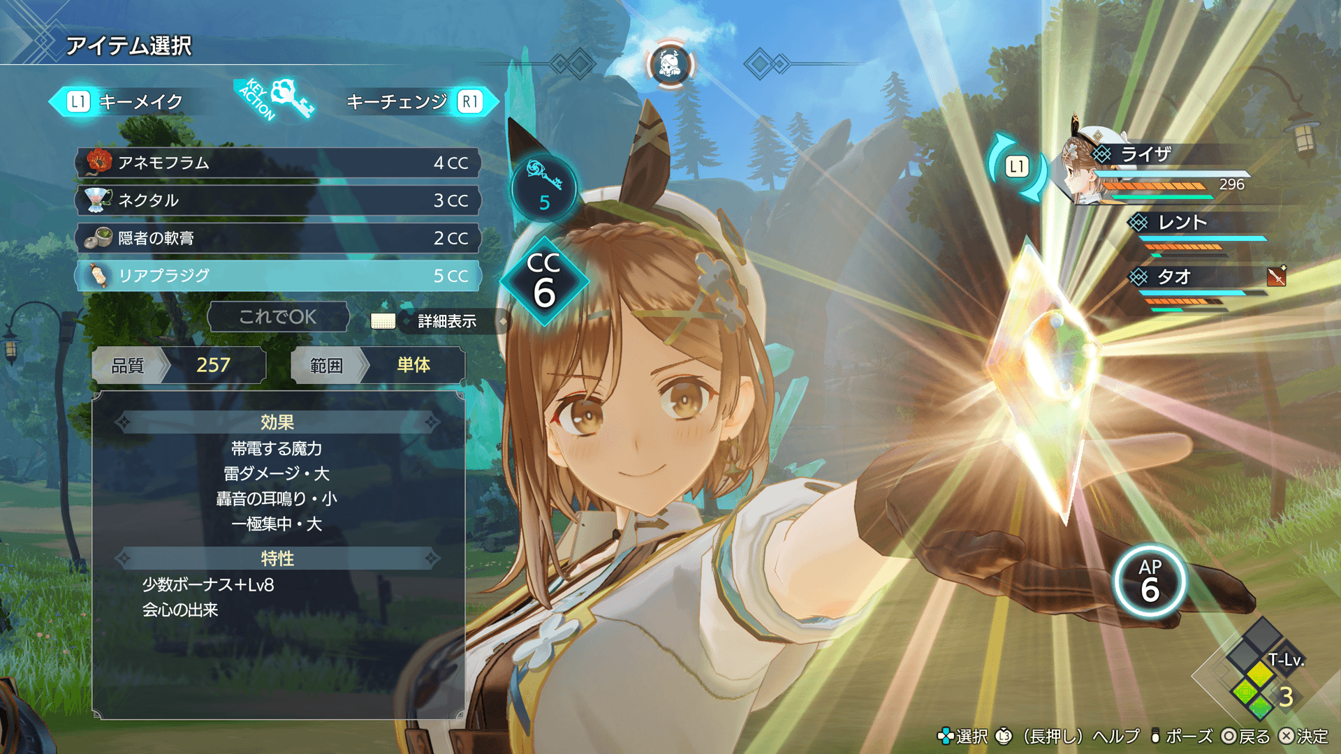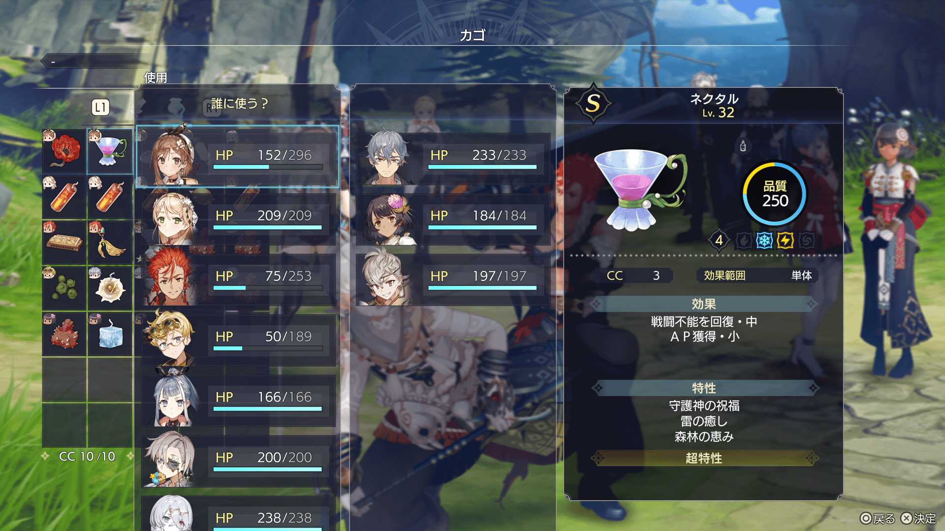 アイテムを使用すると、CCを消費しますが、アイテムは消費しません。戦闘・探索では、キャラクターに登録したコアアイテムのみ使用できます。