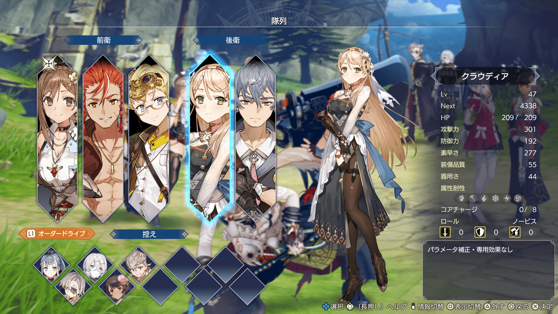 隊列では、戦闘に参加させるメンバーの設定ができます。