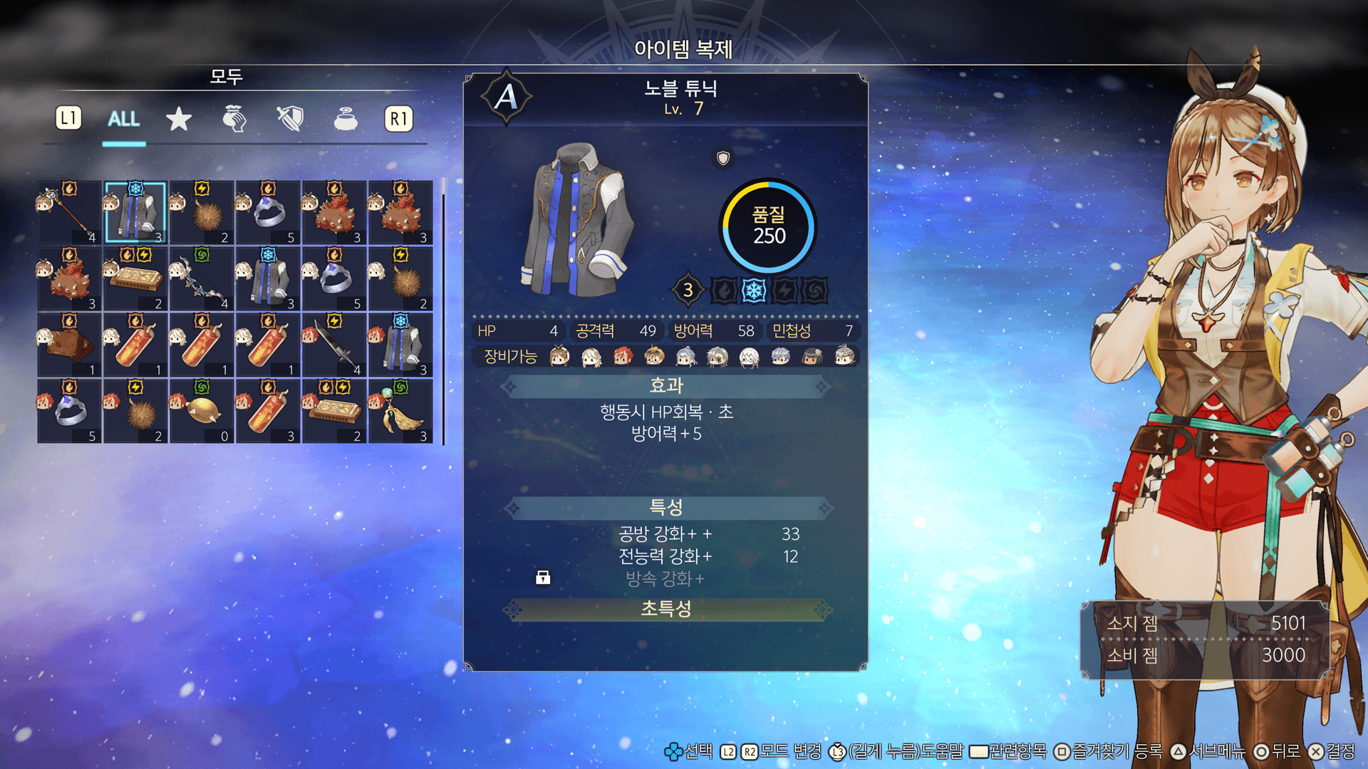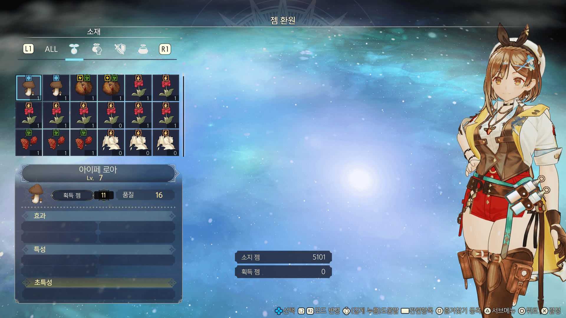 아틀리에 등으로 가져온 아이템 중 품질이 낮거나 개수가 많아 불필요한 아이템을 젬으로 자동 환원할 수 있습니다.
