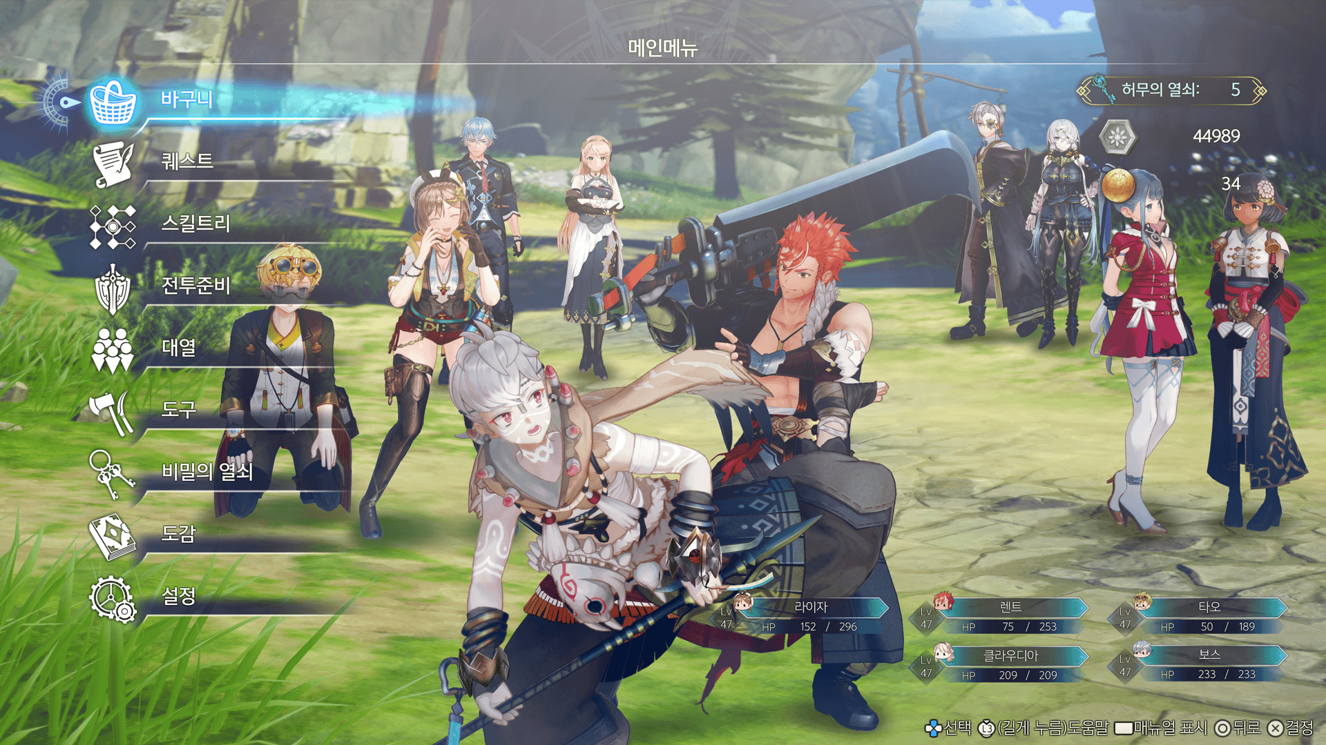 파티 캐릭터의 스테이터스 확인이나 장비 변경, 코어 크리스털의 성능 상승 등을 할 수 있습니다.