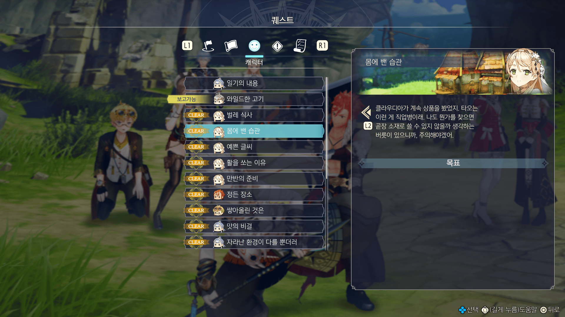 많은 캐릭터 퀘스트는 이벤트를 보는 것만으로 달성할 수 있습니다.