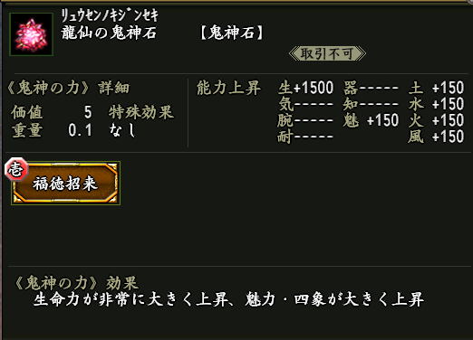 鬼神の力「福徳招来」(ふくとくしょうらい)が付いた鬼神石。