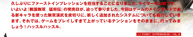 | さっそく、新キャラを使って無双演武にチャレンジ。追加されている4人の印象は、