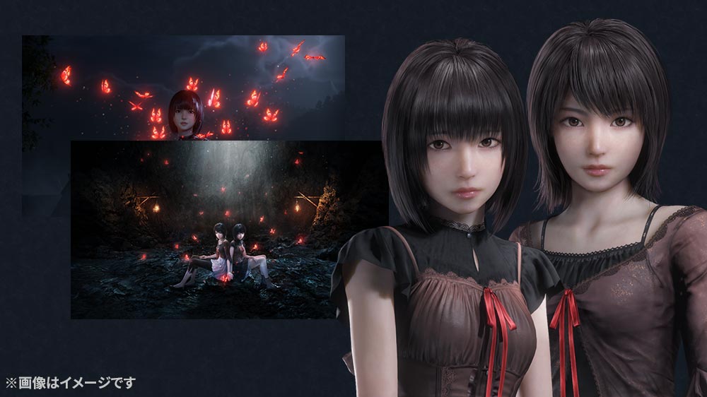 「零」シリーズ2作目のタイトル、和風ホラー『零 ~紅い蝶~』のフルリメイク作品で、怨霊がさまよう廃村に迷い込んだ双子の姉妹が、